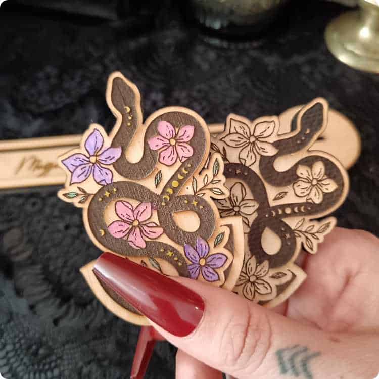 • Bois d’aulne gravé avec motif serpent mystique ✨