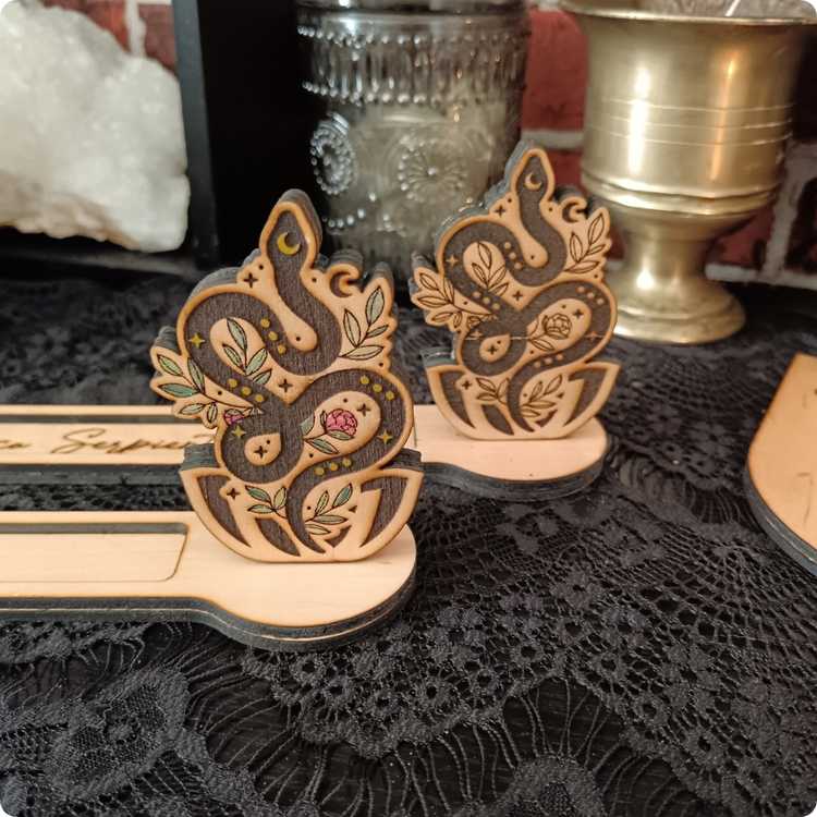 Mais ce gardien n’est pas éternel. Dans la philosophie de la collection, le serpent est un animal mystique temporaire : aujourd’hui présent, demain remplacé par une nouvelle énergie. Grâce à son système modulable, tu peux garder la base de ton porte-encens et changer seulement la plaquette gravée. Ainsi, ton objet évolue au rythme des futures collections et des cycles spirituels.